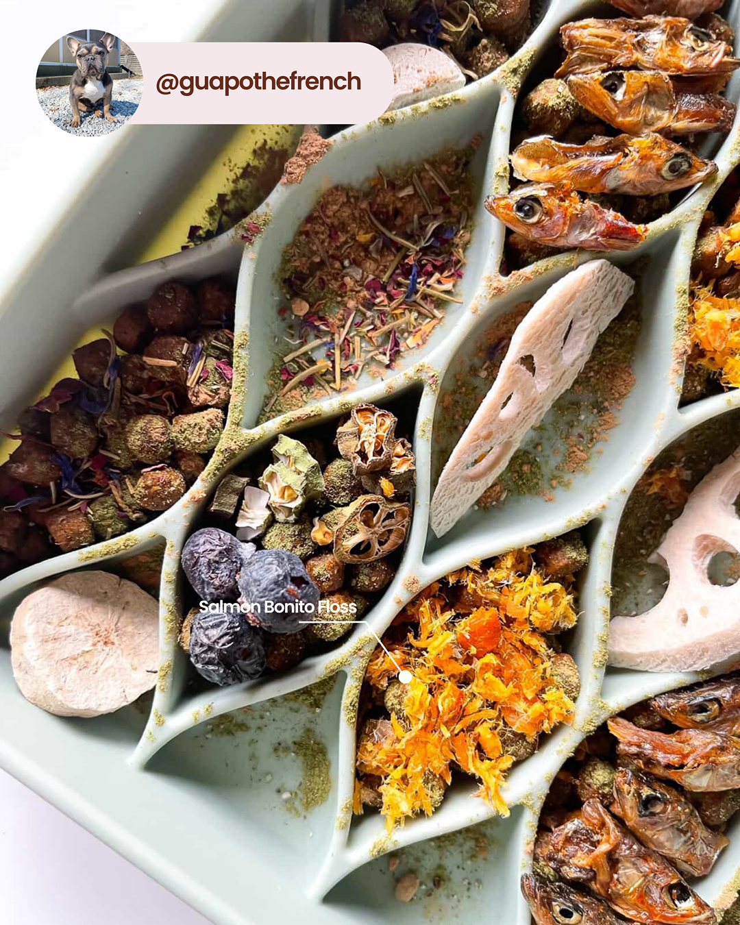 Ingrédients : Saumon, flocons de bonite, curcuma en poudre