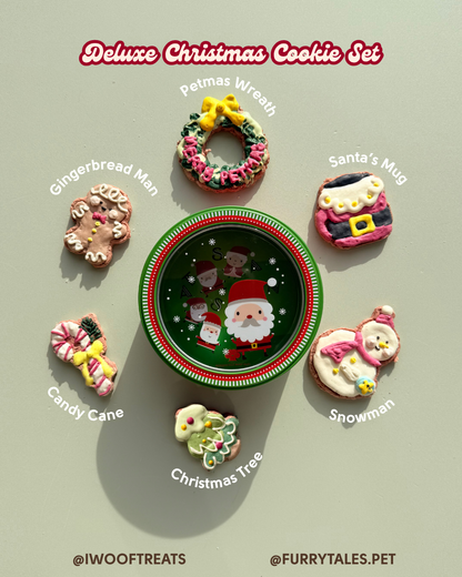1. Deluxe Christmas Cookie Set (Pre-order, ships on Nov 30 onwards): Candy Cane, Christmas Tree, Gingerbread Man, Petmas Wreath, Santa's Mug, Snowman. Deluxe Set comes with 4 different cookie boxes to choose from - Santa's Joy, Rein-reindeer, Teddy's Celebration, Christmas Eve.